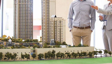 三維沙盤虛實結合 通過無人機航拍和3D虛擬建模方式,呈現項目地塊周邊建筑、景觀及自身配套設施等的鳥瞰場景。
